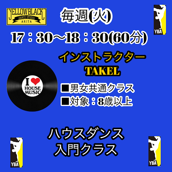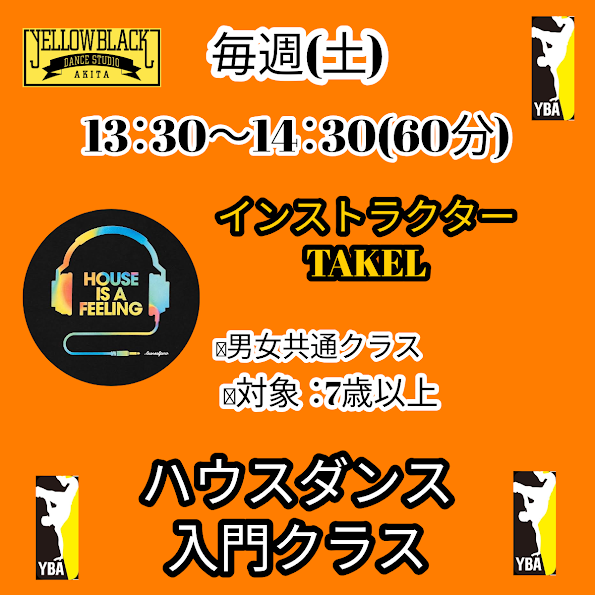 *待望クラス* 毎週土 13:30〜14:30(60分)「ハウスダンス入門クラス」〜男女共通クラス *お待たせいたしました!平日 通えない方はこちらのクラスがオススメです |
